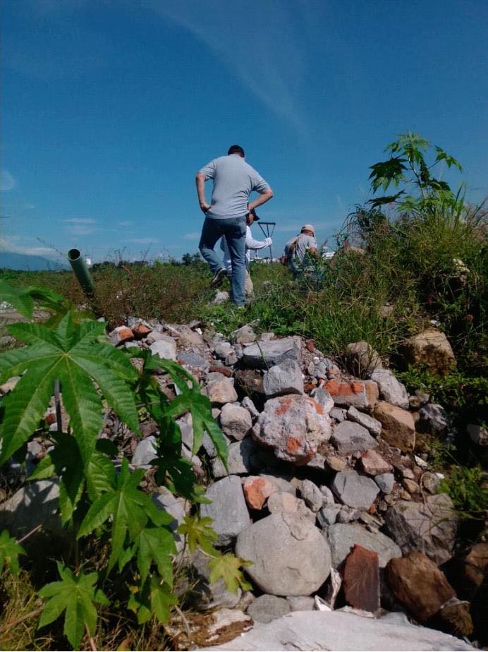 Huele a polvo. El aire que se respira es caliente. La Comisionada de Búsqueda se protege del sol con un sombrero de playa que contrasta muchísimo con el resto de los sombreros o gorras que utilizan las demás personas aquí, y tanto ella como representante de Desarrollo Urbano suben a ratos, de forma discreta, a un auto blanco que aparcaron en la entrada para mitigar el calor con el aire acondicionado.